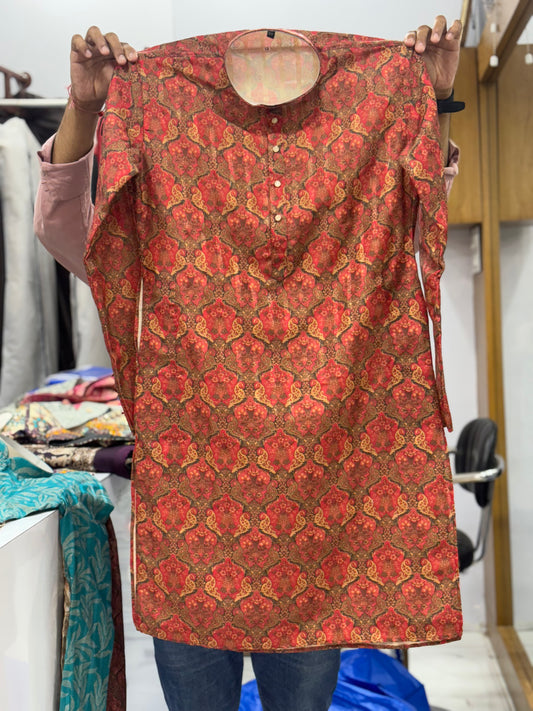 Red Digital Printed Jacquard Kurta for Men – Festive & Navratri Wear - KFM 11